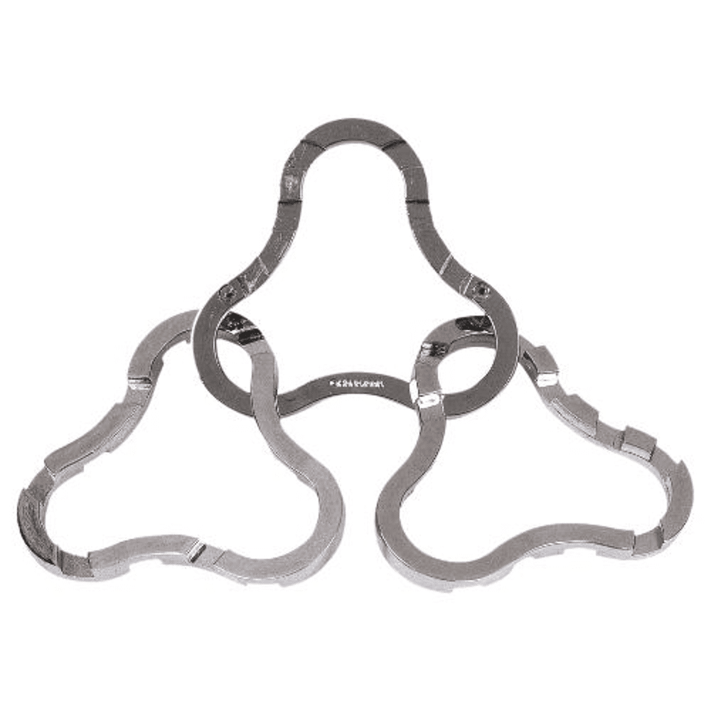 Dit ontwerp lijkt op een vreemd gevlochten sieraad. Als je een glas zou zetten op deze puzzel lijkt hij inderdaad op een onderzetter. (Coaster is engels voor onderzetter). Gebruik deze puzzel als je je gasten een drankje aanbiedt en iedereen weet dadelijk waarover te praten.