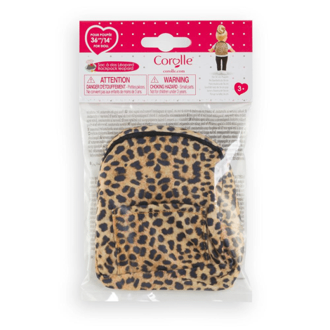 De rugzak met luipaardprint heeft een groot hoofdvak met rits om al je spulletjes van je 36 cm grote ma Corolle-pop op te bergen. Dit accessoire is dé finishing touch voor een casual en coole look.