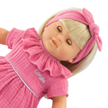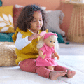Met lang, gemakkelijk te stylen blond haar en de meegeleverde roze borstel is de grote Jade-pop de ideale metgezel voor uw kind om zijn allereerste kapsels te creëren!