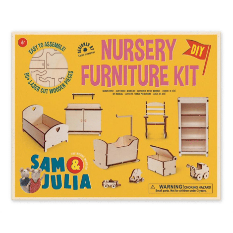 Creëer een mini-babykamer met deze meubelkit! De voorgesneden houten onderdelen zet je gemakkelijk in elkaar met de eenvoudige instructies en hebben een schaal van 1:12. Gebaseerd op de Muizenhuis boekenreeks van Karina Schaapman, stelt de kit je in staat om de charmante wereld van Sam en Julia tot leven te brengen. Deze meubelkit bevat een ledikant, een wieg, een commode, een schommelstoel, een kast, wat kleine speeltjes en planken.