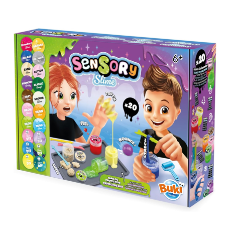 20 soorten slijm om te ontdekken: springend, gloeiend, neon, katoen, metaalachtig, galaxy…Maak eenvoudig mengsels door water toe te voegen aan vooraf afgemeten maatbekers. Gebruik de tools om je slijm te vormen, kneden en mengen.Inclusief: een siliconenmat om de tafel te beschermen en ervoor te zorgen dat er niet geknoeid wordt.