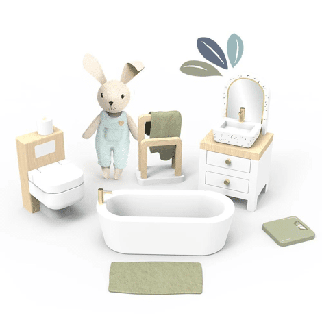 Stimuleer fantasierijk spel met de poppenhuisbadkamer. Dompel je kind onder in creatieve verhalen en rollenspellen met de poppenhuisbadkamer.