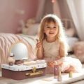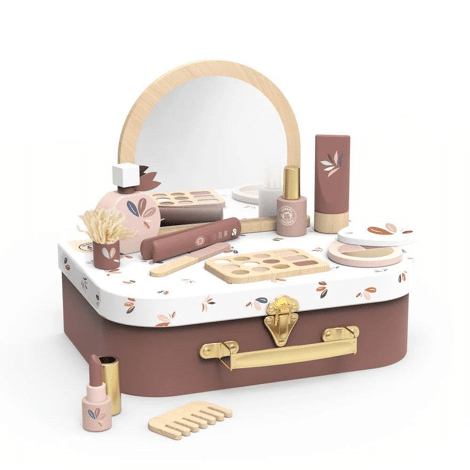 Laat de fantasie en rollenspellen van je kind de vrije loop met de charmante Beauty Suitcase! Deze prachtige houten set is ontworpen voor beginnende stylisten van 36 maanden en ouder en nodigt uit tot urenlang fantasiespel en creativiteit.Als je de koffer opent, zie je een kleurrijke collectie houten beautyaccessoires, perfect om op een leuke, veilige en schermloze manier de routines van volwassenen na te bootsen. Van fantasiemake-up tot haarverzorgingstools, elk onderdeel is zorgvuldig ontworpen voor kleine handjes om vast te houden, wat helpt bij het stimuleren van de fijne motoriek, fantasierijk spel en sociale interactie. Inclusief 12 accessoires.