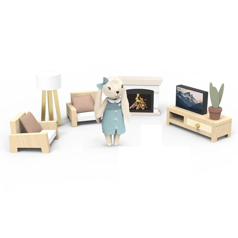 Ervaar de charme van een poppenhuiswoonkamer. Stap in een wereld van verbeelding met de poppenhuiswoonkamer, een betoverende aanvulling op je poppenhuiscollectie.