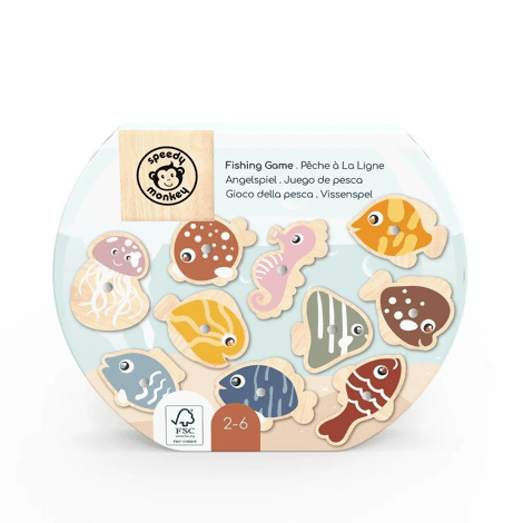 Tijd om te gaan vissen. Pak je hengel en beleef een leuke tijd!Deze kleurrijke houten vissen kunnen worden vastgemaakt met de magnetische hengel en, zodra ze veilig vastzitten, weer op het houten plankje worden neergelaten.Het vereist vaardigheid en concentratie om elke vis te vangen.